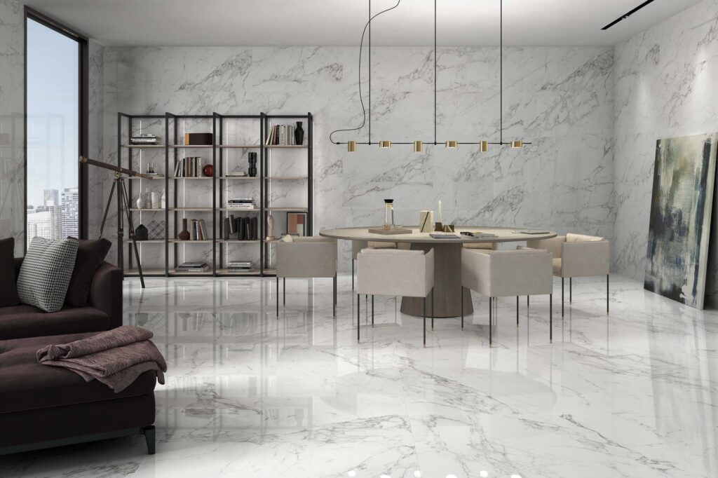 Elegant and reflective, Glossy tiles bring brightness and luxury to any room. Perfect for living areas, kitchens, and showrooms.